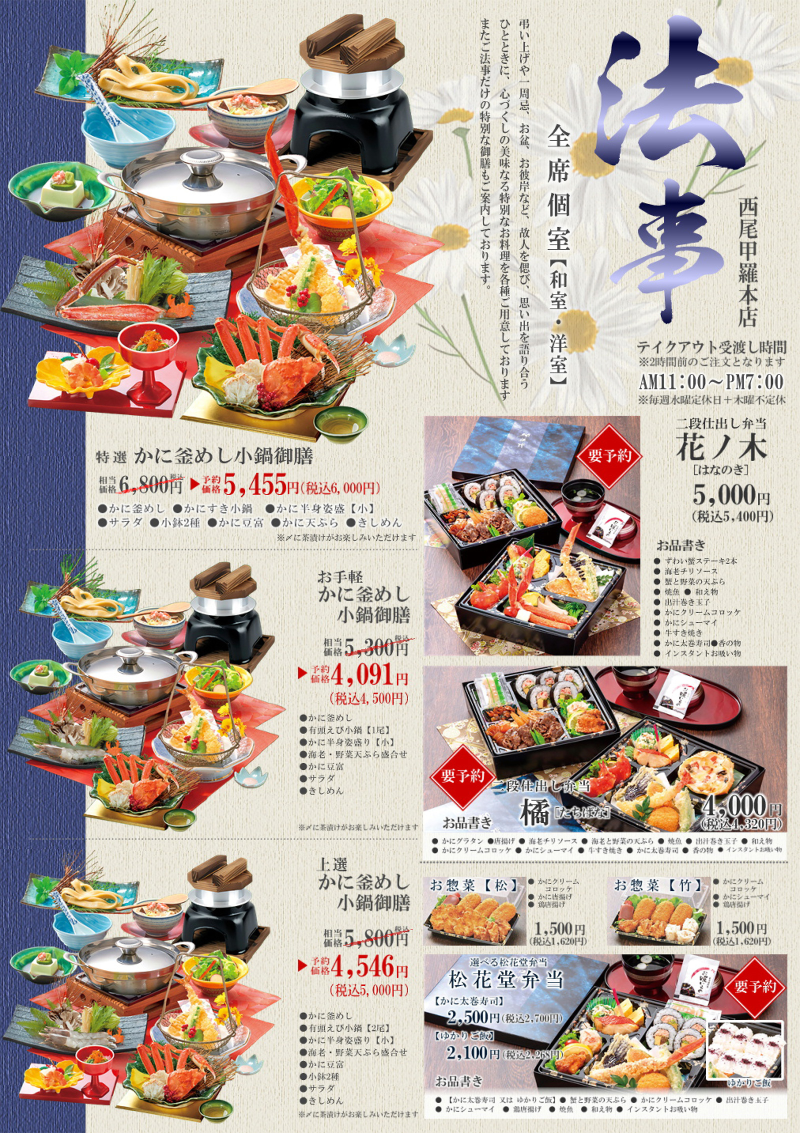 お子様弁当(税金8%) うきうき弁当 1,280円(+税)、わくわく弁当 1,780円(+税)、お子様会席弁当 2,180円(+税) ※お子様セットをベースに作られております。詳細は店舗にてご確認下さい。
